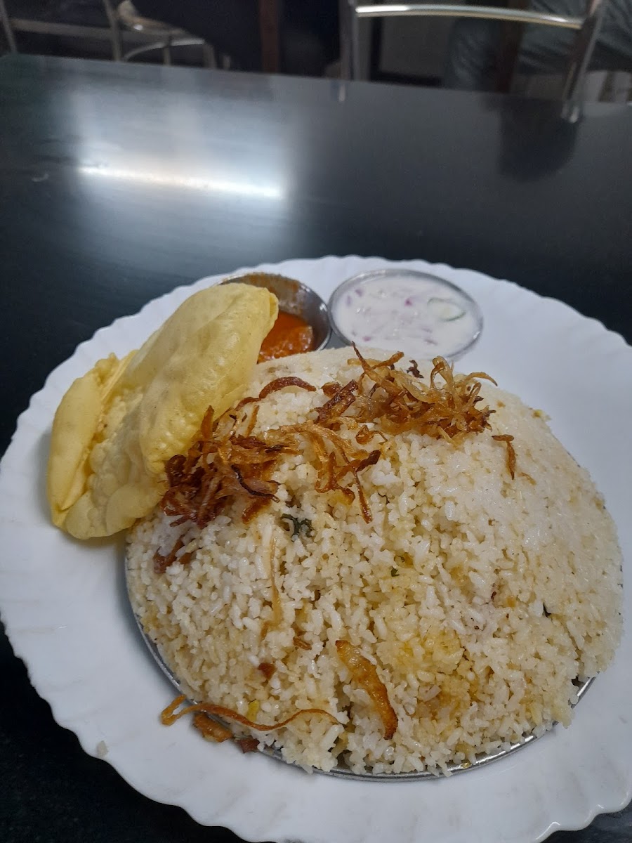 I ordered Chicken Biriyani from here and for my taste it was Ok it was really filling and Ok for the price, I really liked it. The service they provided was really satisfactory. The building looks pretty old brings a nostalgic atmosphere to it.